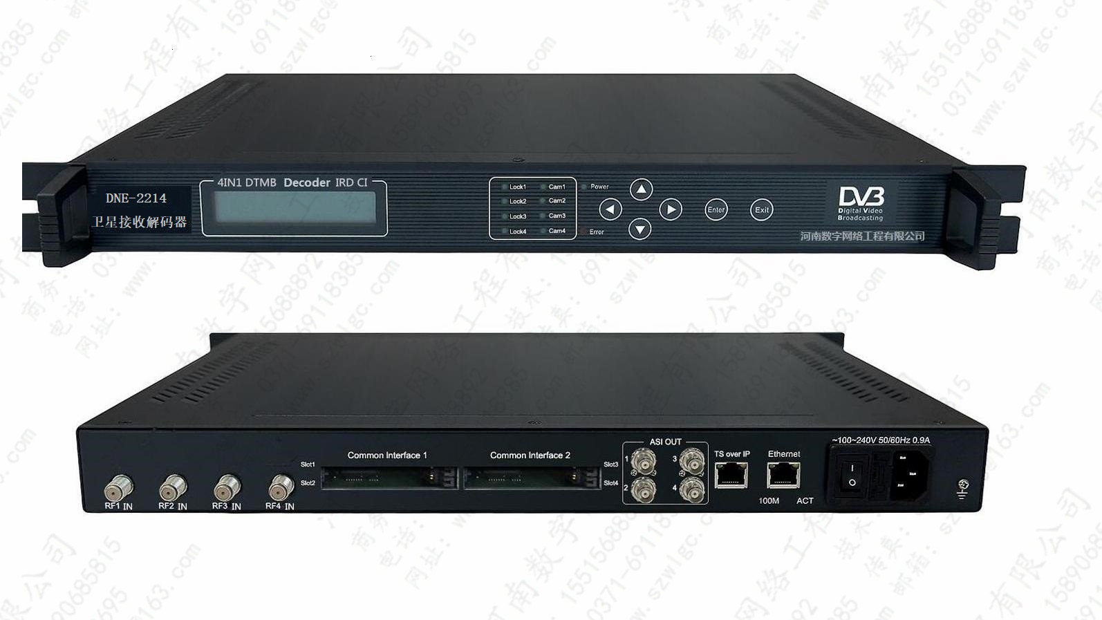 | DNE-2214B 高標清衛星AVS+接收解碼器,可解碼H.264/MPEG4 AVC、MPEG2,AVS/AVS+,支持1路DVB-S/S2衛星射頻信號,1路ASI輸入或1路IP輸入,輸入信號DVB-S/S2被解調成TS流,并通過ASI接口,AV接口,YPbPr接口,SDI接口,HDMI接口或IP口輸出,接口齊全豐富。它有2個CI接口,同時支持2路CAM卡套解密,擁有強大的信號接收、解擾以及解碼功能,滿足多種應用需求。是數字電視前端系統中接收和處理加密衛星節的主要設備之一