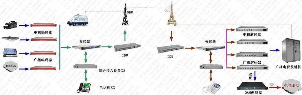 | 本案兩個微波站點,從主站傳到10km轉播站,海拔高差近似相等。采用新一代PTN數字微波通信技術,信源數字化處理,TS流數據打包,IP組播流干線點對點傳輸。系統集成的日電通信有限公司的TDM交換、分組交換及微波光纖特性于一體的數字微波傳輸設備,ODU收發信機,IDU調制解調設備、天饋系統、信道編解碼系統,供電系統、抗干擾系統、防雷系統、固話接入系統等。為廣播電視轉播提供高保真的信號源;并具備以太網公務信號,站點檢測,數據通訊功能。為保證節目傳輸的安全,滿足不斷增加的節目傳輸量,為廣播電視擴容升級奠定基礎。 |