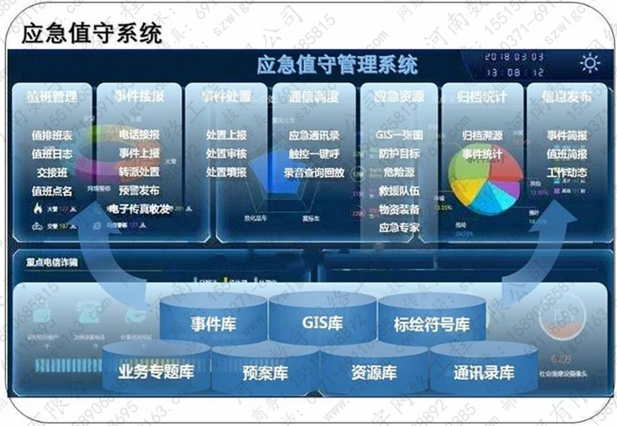 應(yīng)急值守管理系統(tǒng)是應(yīng)用于接收、處理突發(fā)緊急事件的,滿足應(yīng)急救援和值班調(diào)度實際需求的一套管理系統(tǒng)。系統(tǒng)實現(xiàn)了緊急突發(fā)事件處理的全過程跟蹤和支持:信息接收、信息審核、信息匯總、接收續(xù)報、輔助決策、響應(yīng)指示、協(xié)調(diào)調(diào)度、應(yīng)急保障、災(zāi)后匯總等。為應(yīng)急人員在緊急事件的處理過程中,快速、及時、準(zhǔn)確地處理應(yīng)急事務(wù),通過多種方式進(jìn)行高效的溝通、指揮調(diào)度提供了強(qiáng)有力的通信和信息保障。
